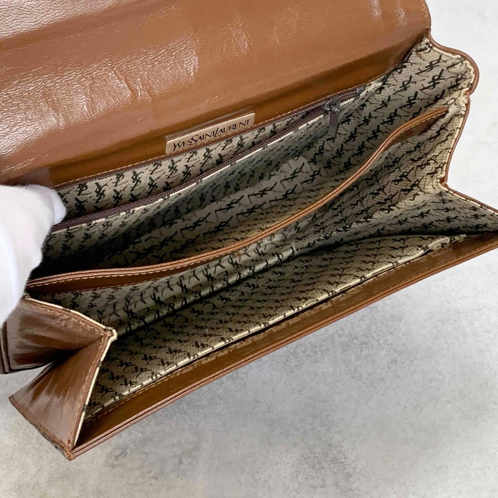 Yves Saint Laurent Bag Shoulder YSL Cassandra Logo Brown Authentic Leather