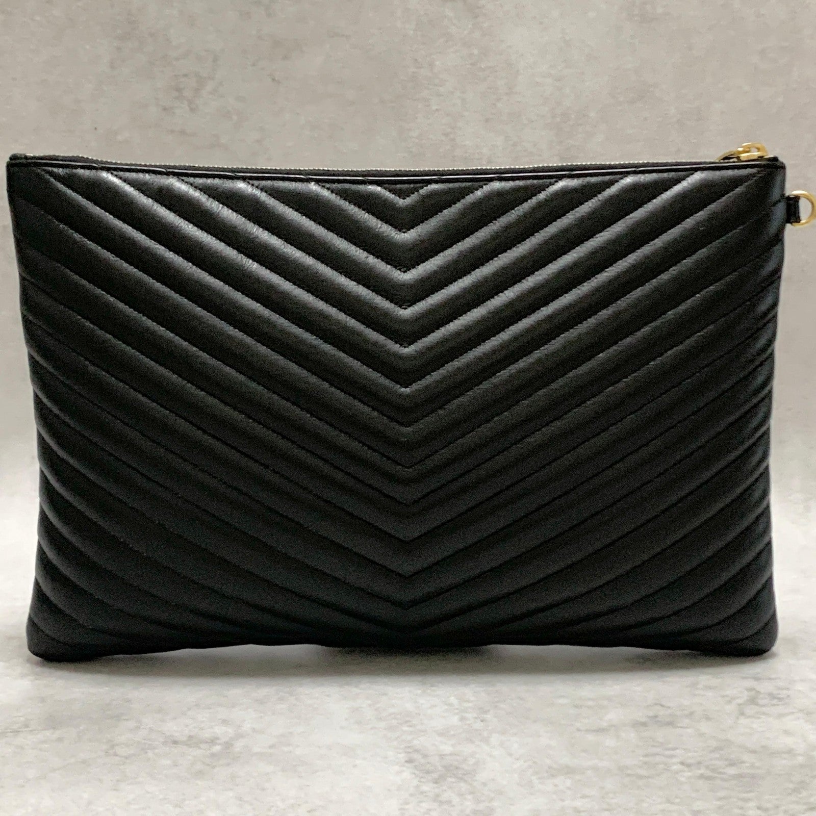 Yves Saint Laurent Clutch Bag YSL Cassandra Quilted Purse Handbag Black Leather