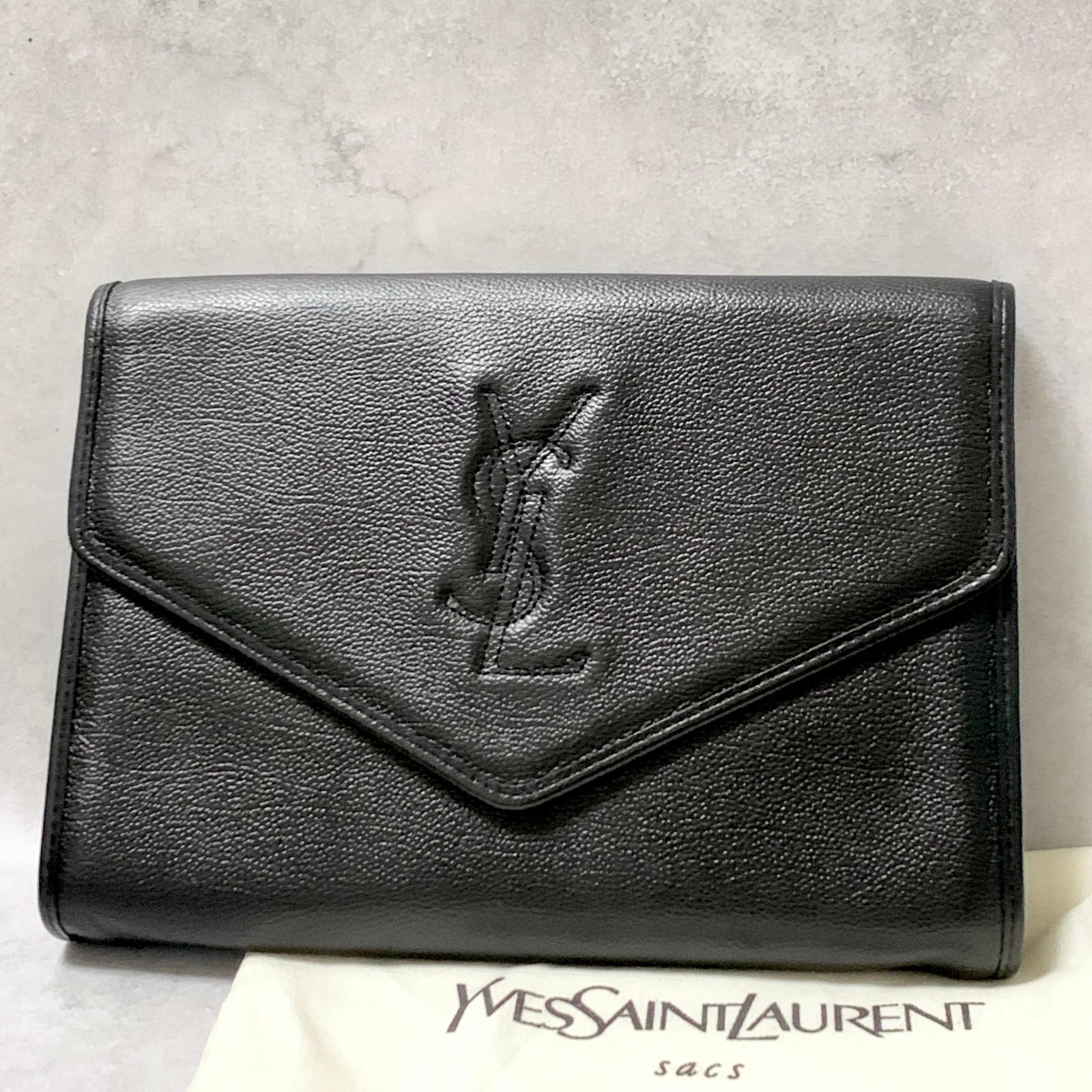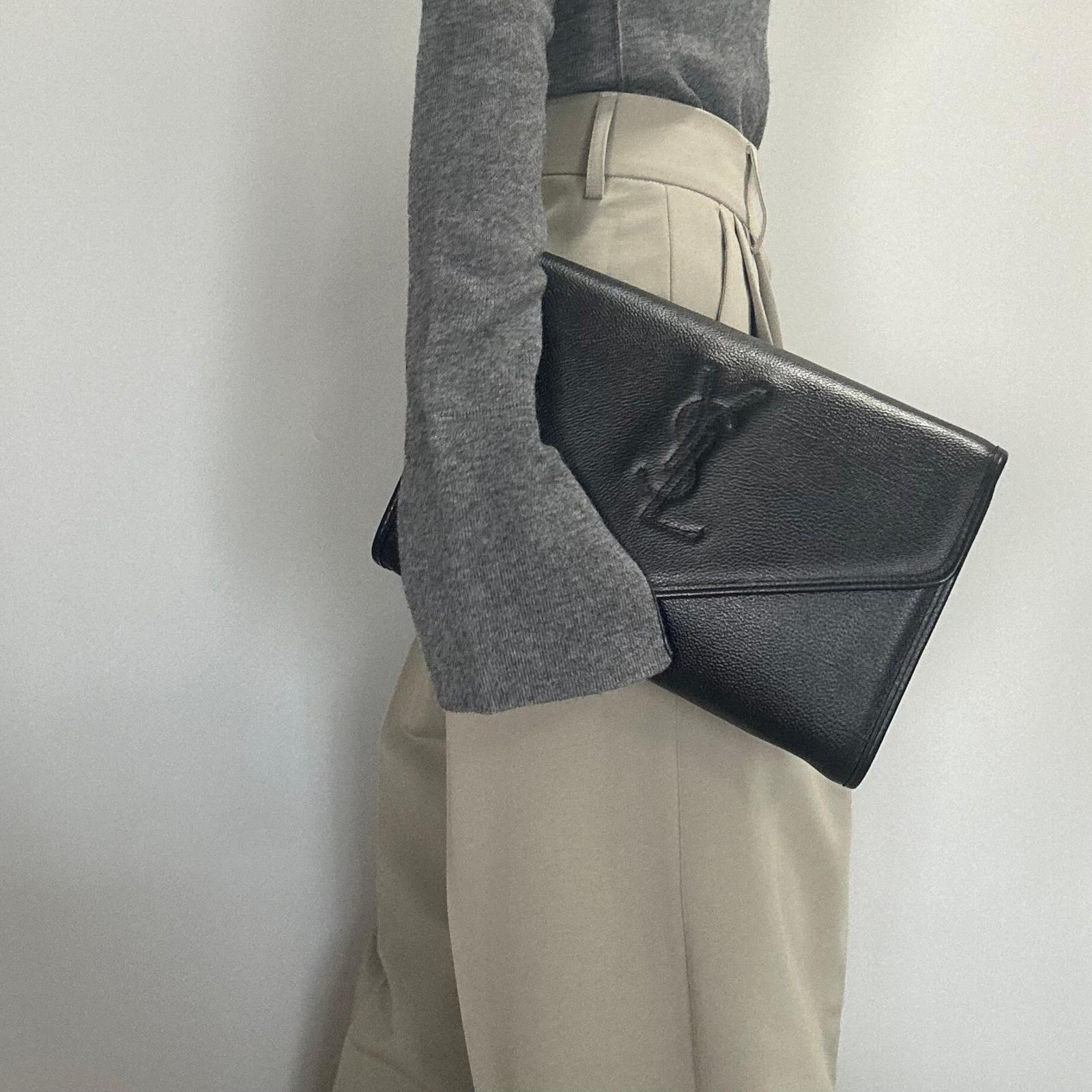 Yves Saint Laurent Clutch Bag YSL Handbag Purse Cassandra Pouch Leather Black