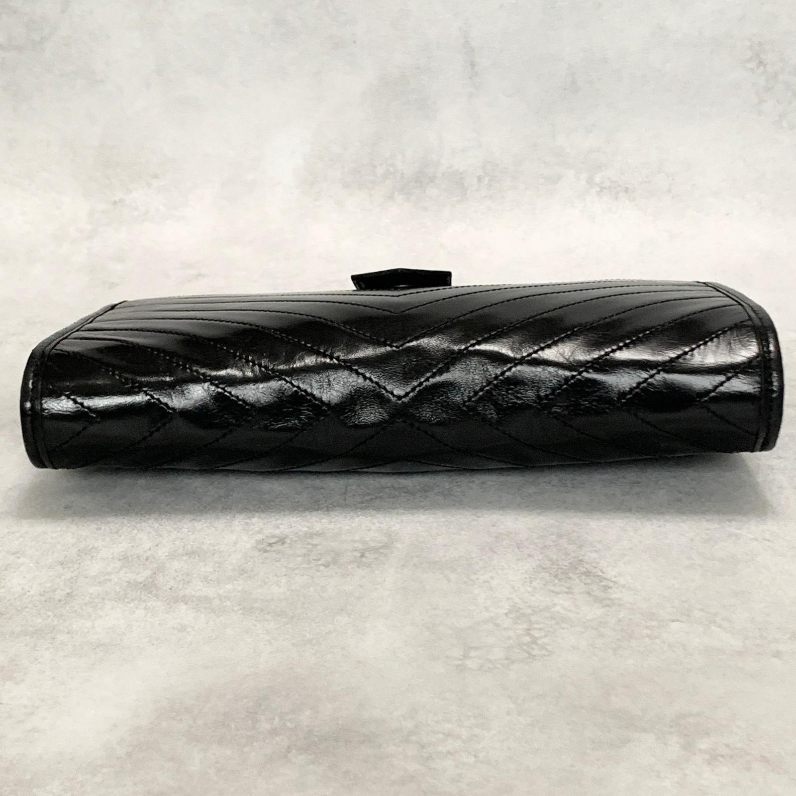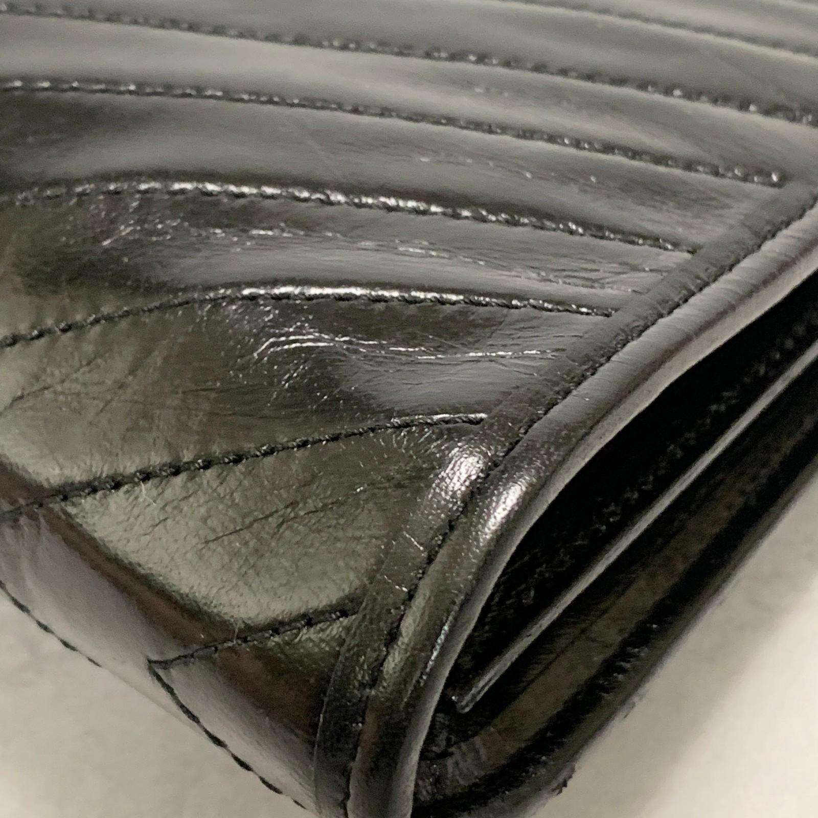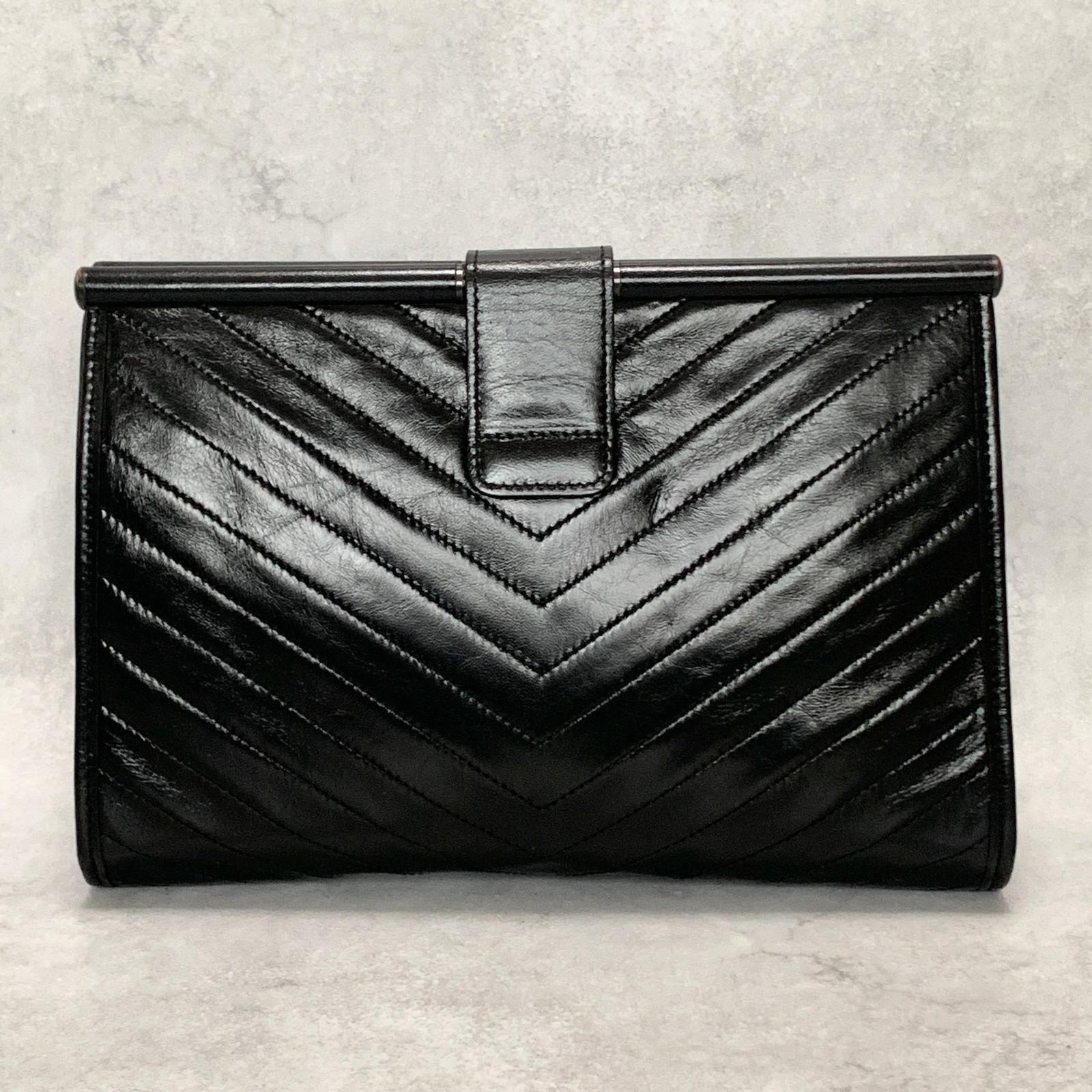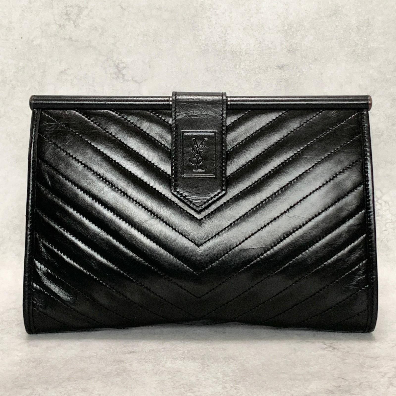 Yves Saint Laurent Clutch Bag YSL Logo Cassandra Purse Handbag Leather Black