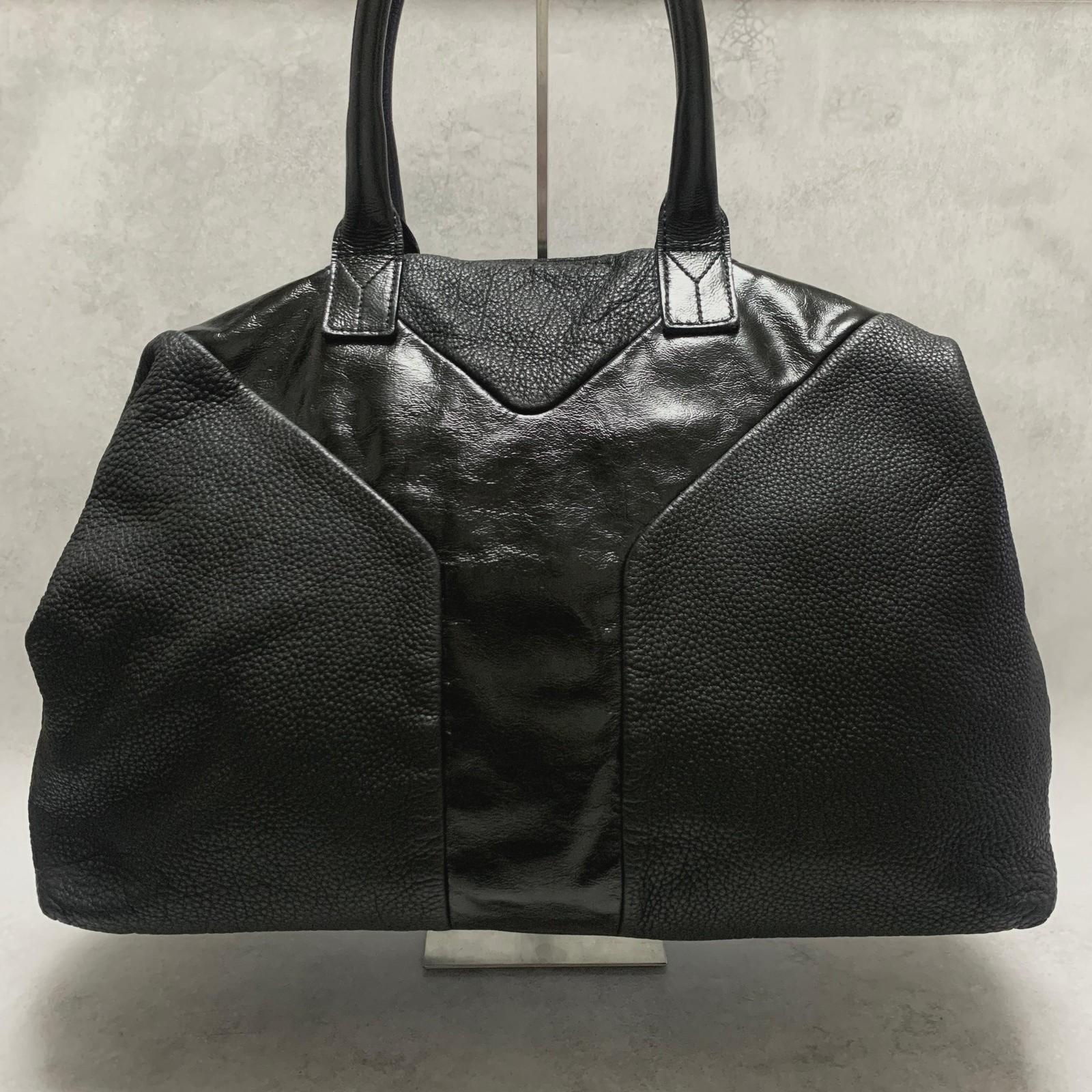 Yves Saint Laurent Easy Bag YSL Boston Hand Tote Purse Leather Black Silver Auth