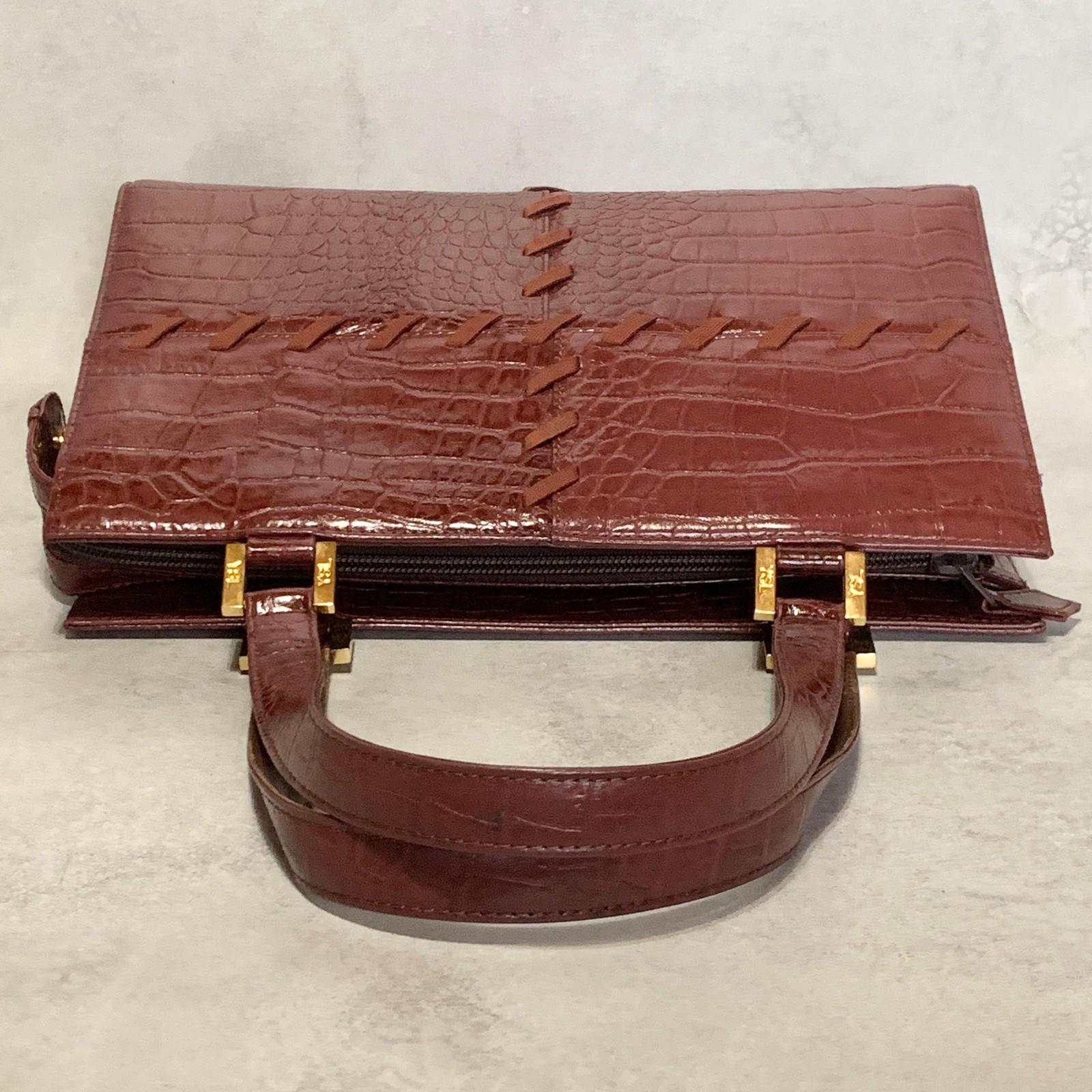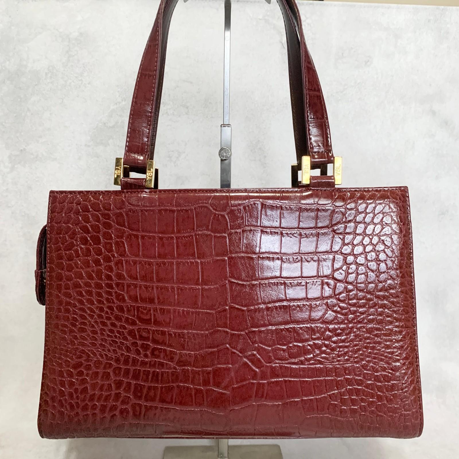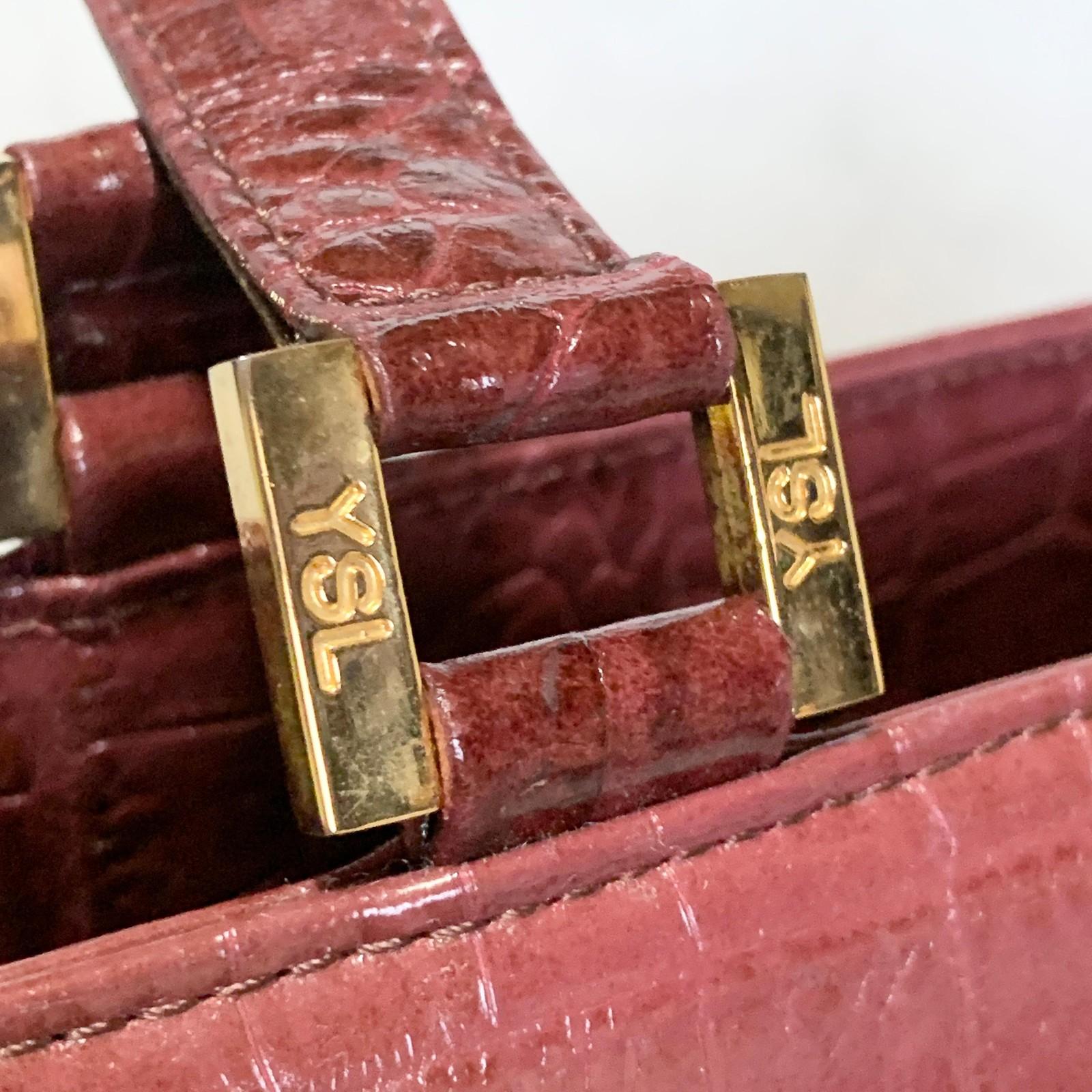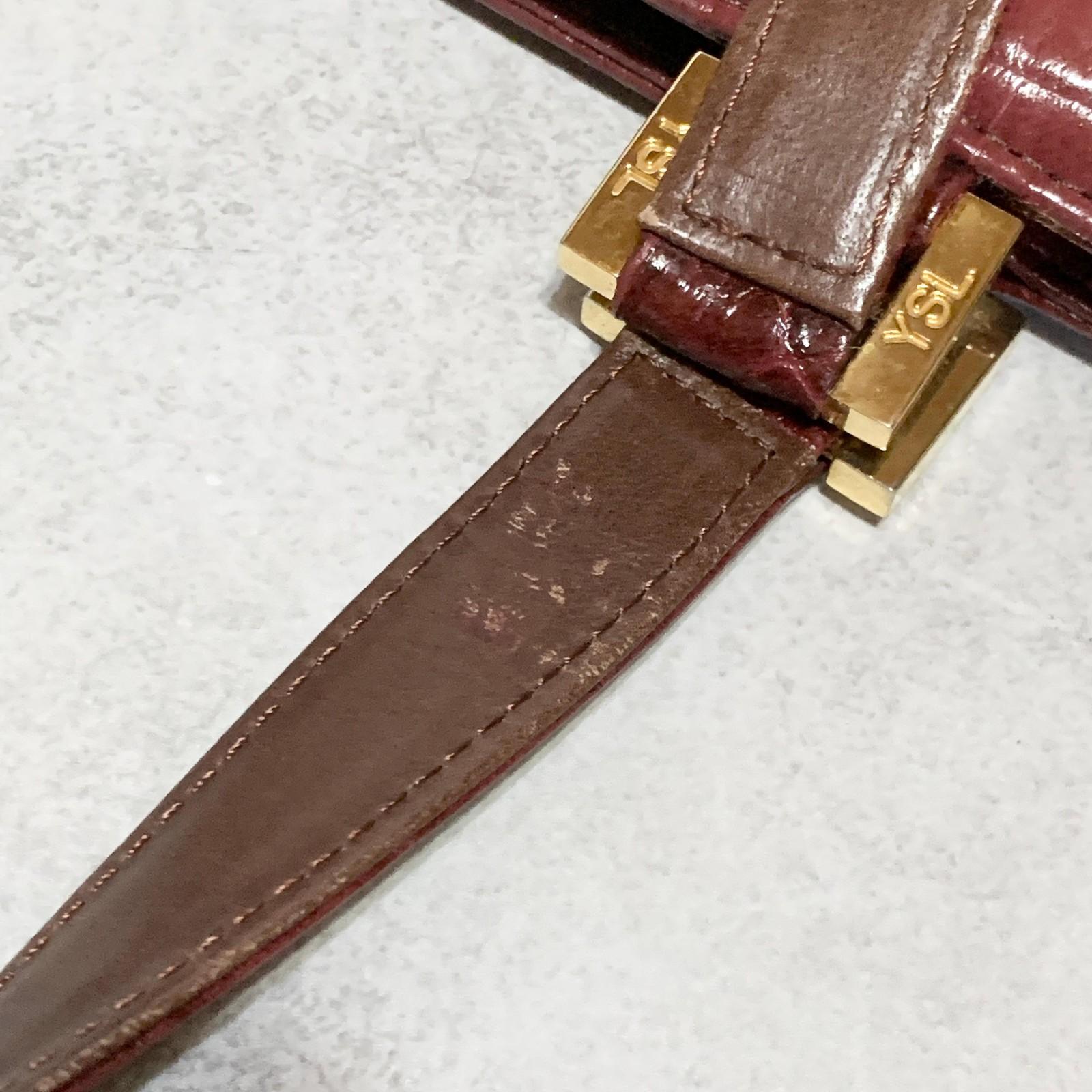 Yves Saint Laurent Hand Bag Logo Tote Purse Leather Red Gold Used Authentic