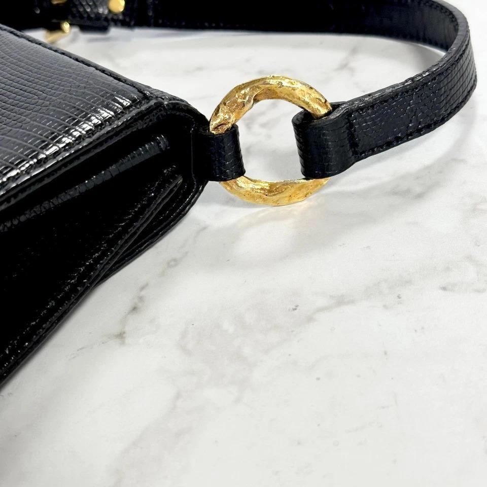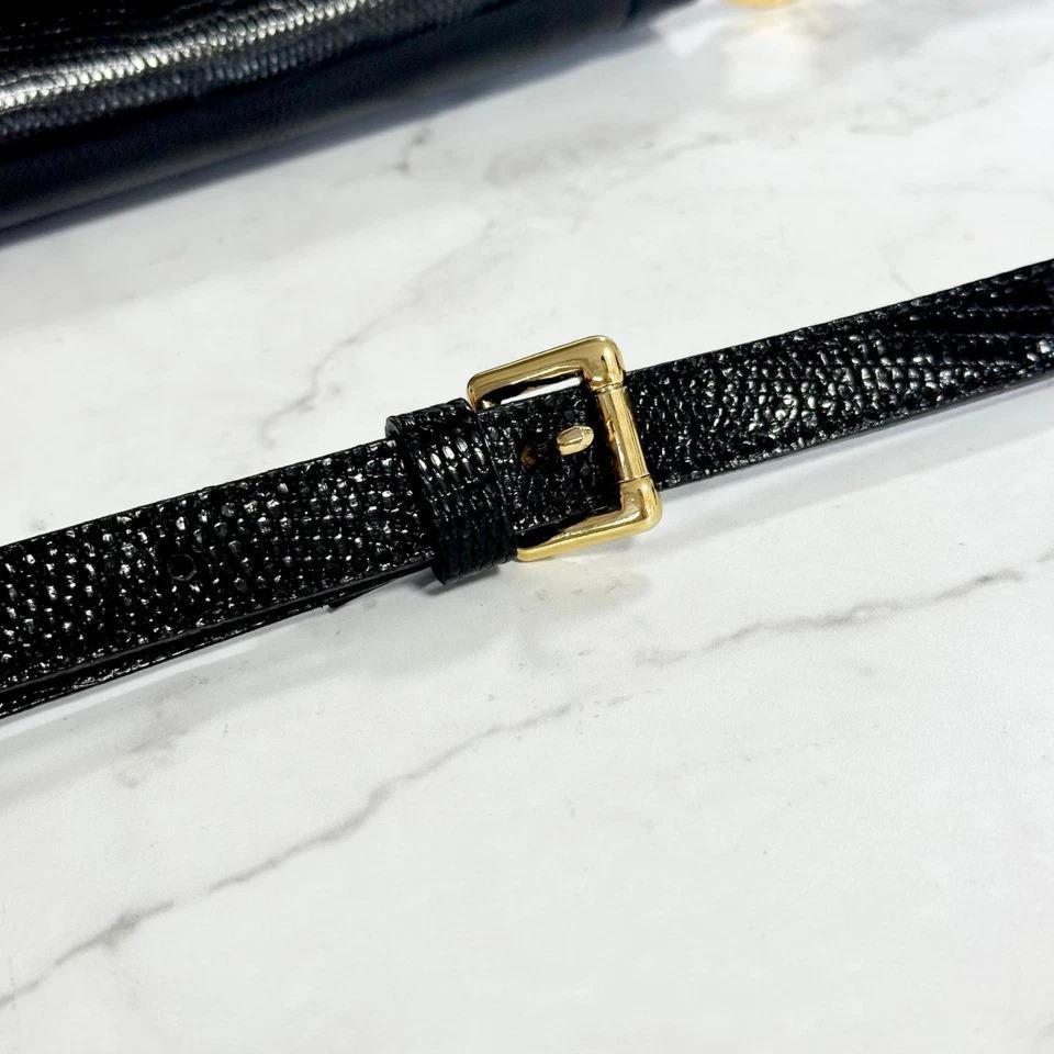 Yves Saint Laurent Shoulder Bag YSL Cassandra Leather Black Gold Purse Authentic