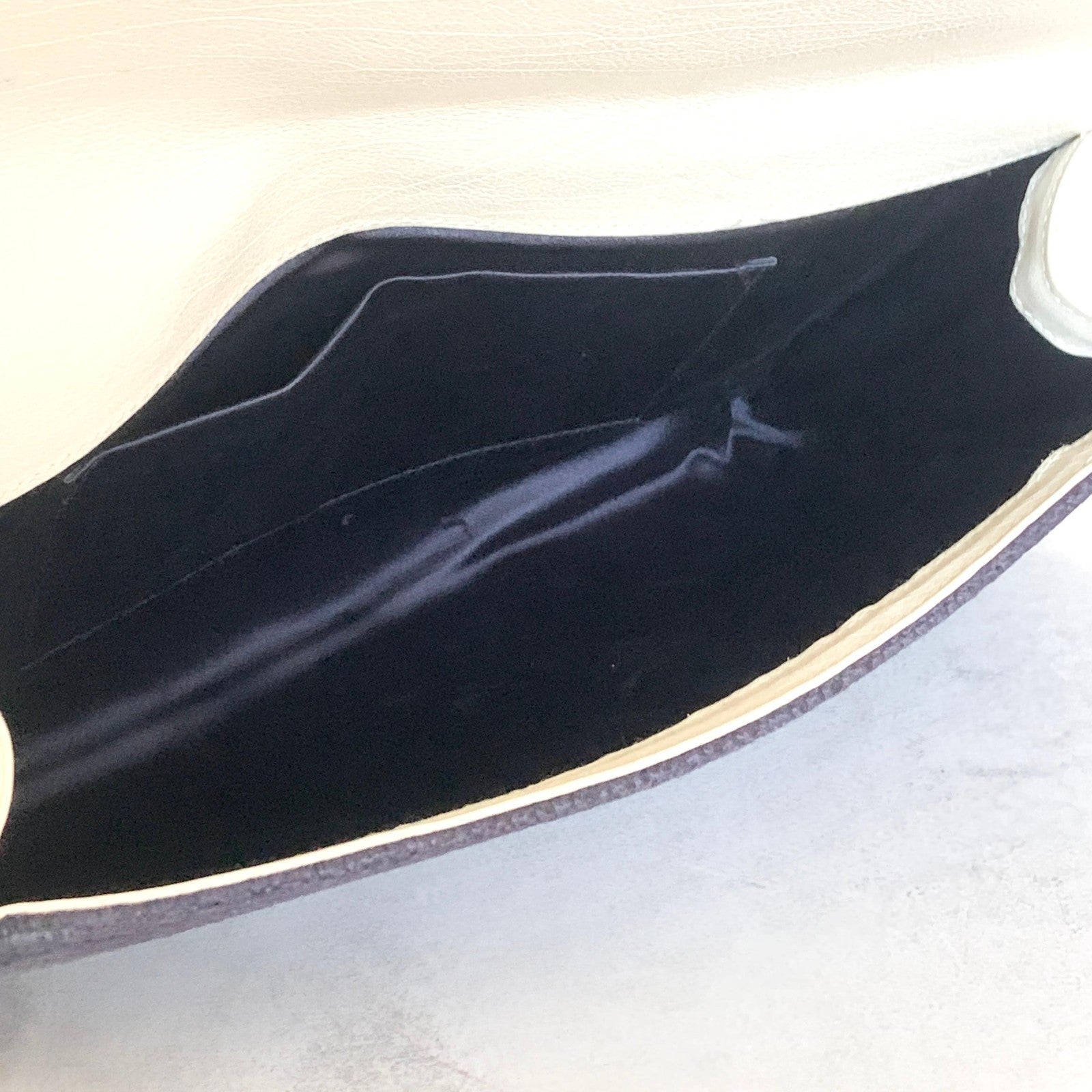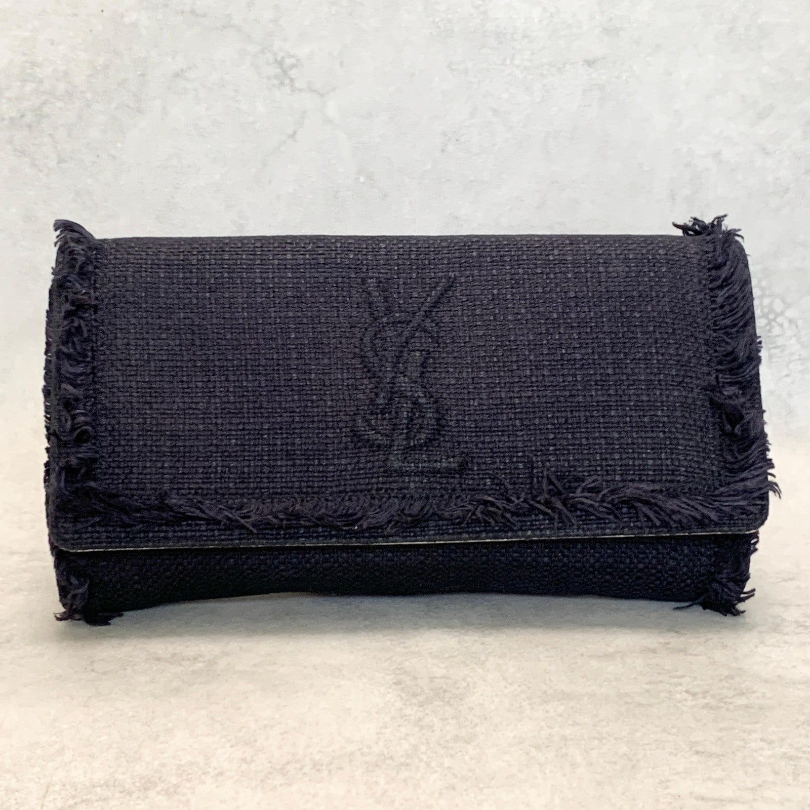 Yves Saint Laurent YSL Clutch Bag Purse Cassandra Handbag Canvas Leather Navy